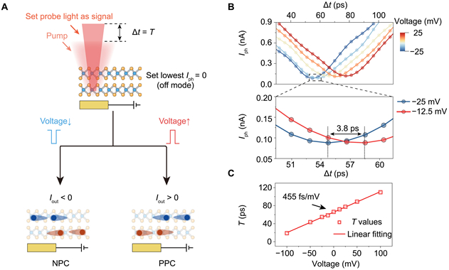 ○ 특히, 연구팀은 이번 현상을 기반으로 전압-프로그래머블 NPC/PPC 광검출기 구조를 제안 및 구현해, 수 mV 수준의 미세 전압만으로 전환 시점을 피코초 수준에서 정밀하게 제어할 수 있음을 확인했다. 이 소자는 게이트 전극이나 외부 추가 모듈 없이도 음·양 광전도 모드를 선택적으로 구동할 수 있어, 기존 광검출기의 구조적 복잡성과 전력 소모 한계를 극복했다.