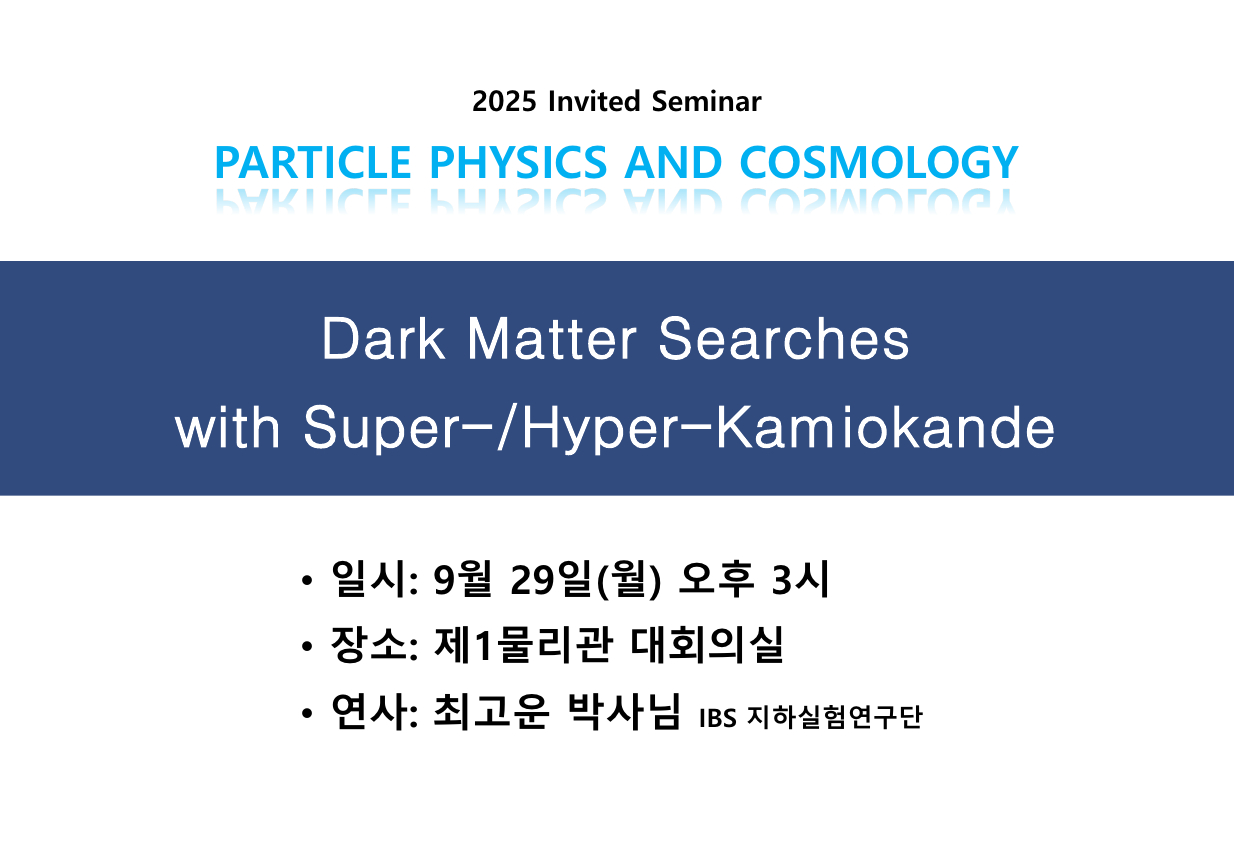 [입자물리 세미나 안내] 9월29일(월) 오후 3시 / 최고운박사님(IBS 지하실험연구단)