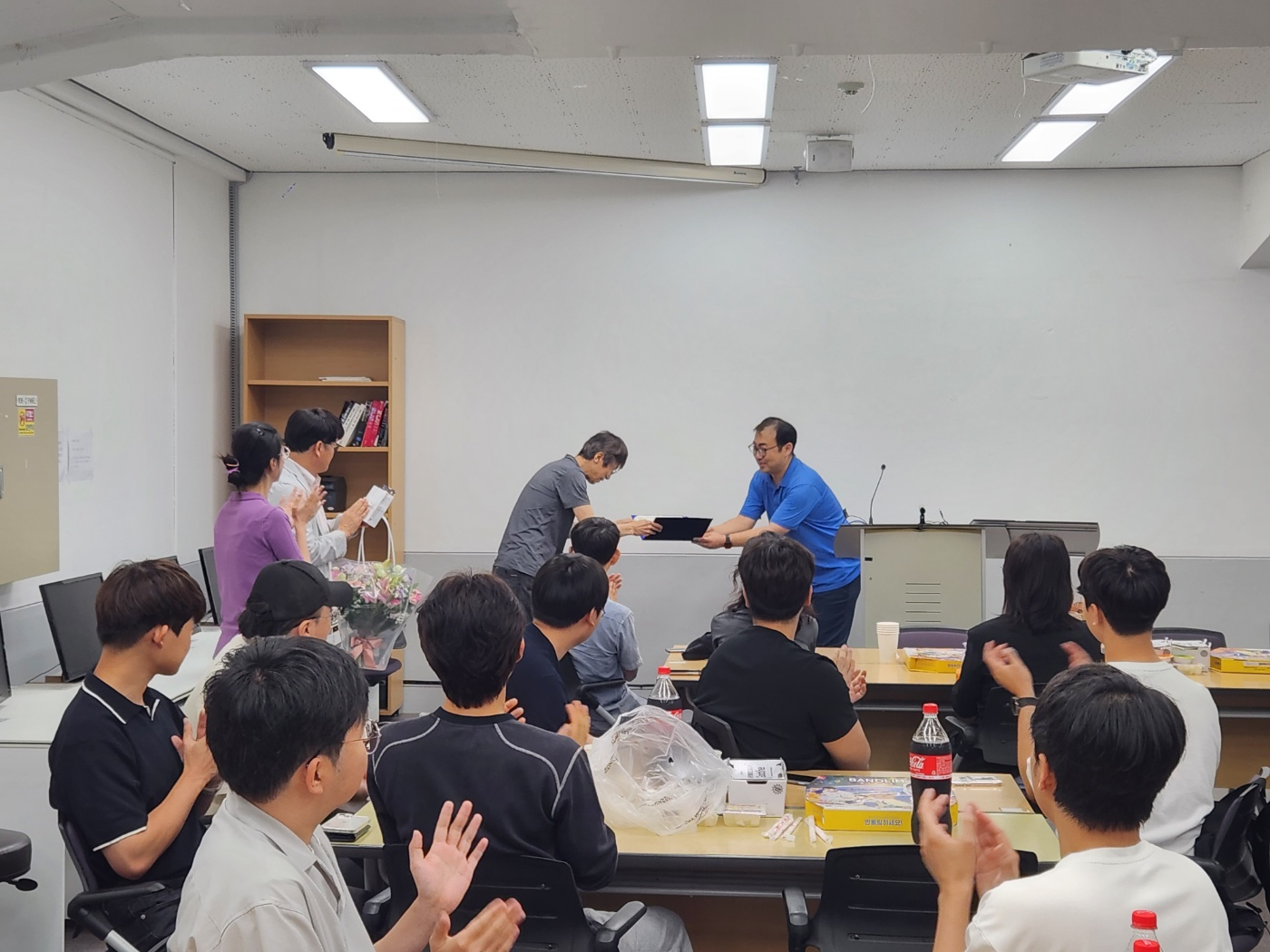 2025학년도 자연과학대학 학술상 시상식지난 6월 4일(수), 자연과학대학 학술상 시상식이 열렸습니다. 먼저 정재훈 자연과학대학장님의 축하인사로 시상식이 시작되었습니다. 우리 물리학과에서는 이재광 교수님의 지도를 받는 김성문, 황재진 석박통합과정 학생 두분이 학술상을 수상하였습니다 두 분의 수상을 진심으로 축하드리며, 앞으로의 연구 활동도 기대하겠습니다.