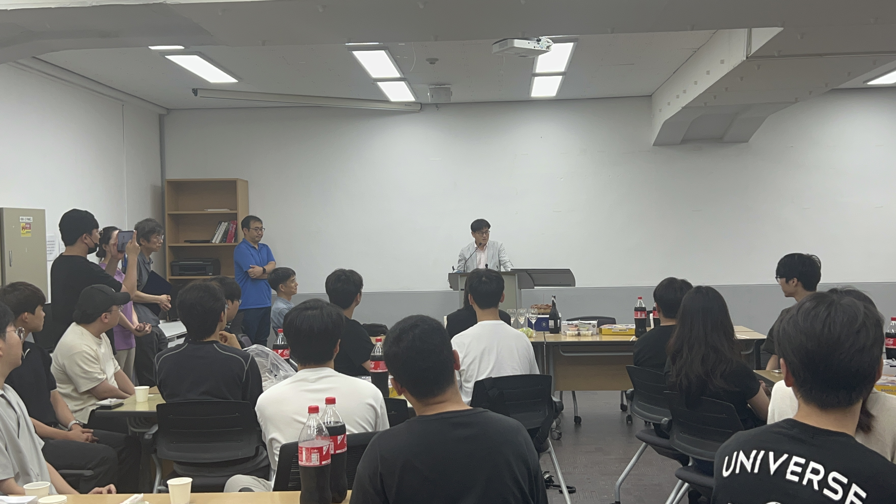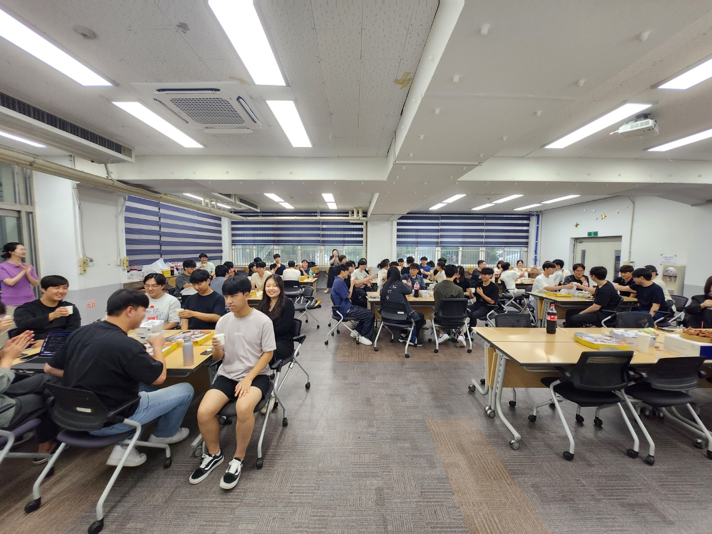 2025년 3월, 새 학기를 맞아 따뜻한 봄바람과 함께신입생들을 환영하는 자리를 가졌습니다. 서로 낯설지만 설렘이 가득했던 그날,선배들과 교수님들의 환영 속에서웃음꽃이 피었던 순간들을 사진으로 담았습니다. 처음의 떨림이,앞으로의 대학 생활을 함께 만들어갈 소중한 첫걸음이 되기를 바랍니다 학생회장 김태동 학생의 사회로 교수님들과의 QnA 시간이 시작되었습니다. 이번 환영회에는 학과장님을 비롯해정진유 교수님, 이창환 교수님께서 자리를 함께해 주셨습니다 학과장님의 따뜻한 격려와 함께, 학문과 삶의 균형에 대한 이야기가 이어졌습니다. 학생들의 눈높이에 맞춘 유쾌한 조언을 전해주신 정진유 교수님. 진로에 대한 고민에 조언을 아끼지 않으신 이창환 교수님 처음엔 조심스러웠지만, 점차 자유롭고 편안한 분위기 속에서교수님과의 진솔한 대화가 오갔습니다 QnA 이후, 자연스럽게 이어진 뒷풀이 시간!신입생과 선배들이 한 자리에 모여조금은 어색했던 첫 만남의 벽도 서서히 허물어졌습니다. 조별로 나뉘어 선배들과 신입생이 진솔한 대화를 나누고,교수님들과 함께 건배를 외치며 서로에게 한 발 더 가까워지는 시간이었습니다. 처음엔 어색했지만, 어느새 모두가 함께 웃고 있었습니다.마음을 모아 만든 하트처럼, 앞으로도 함께할 시간들이 기대됩니다. 낯설지만 설레는 시작.오늘의 이 환영회가, 여러분의 대학 생활에 따뜻한 첫 페이지가 되었기를 바랍니다.앞으로 마주하게 될 수많은 날들, 함께 걸어가요