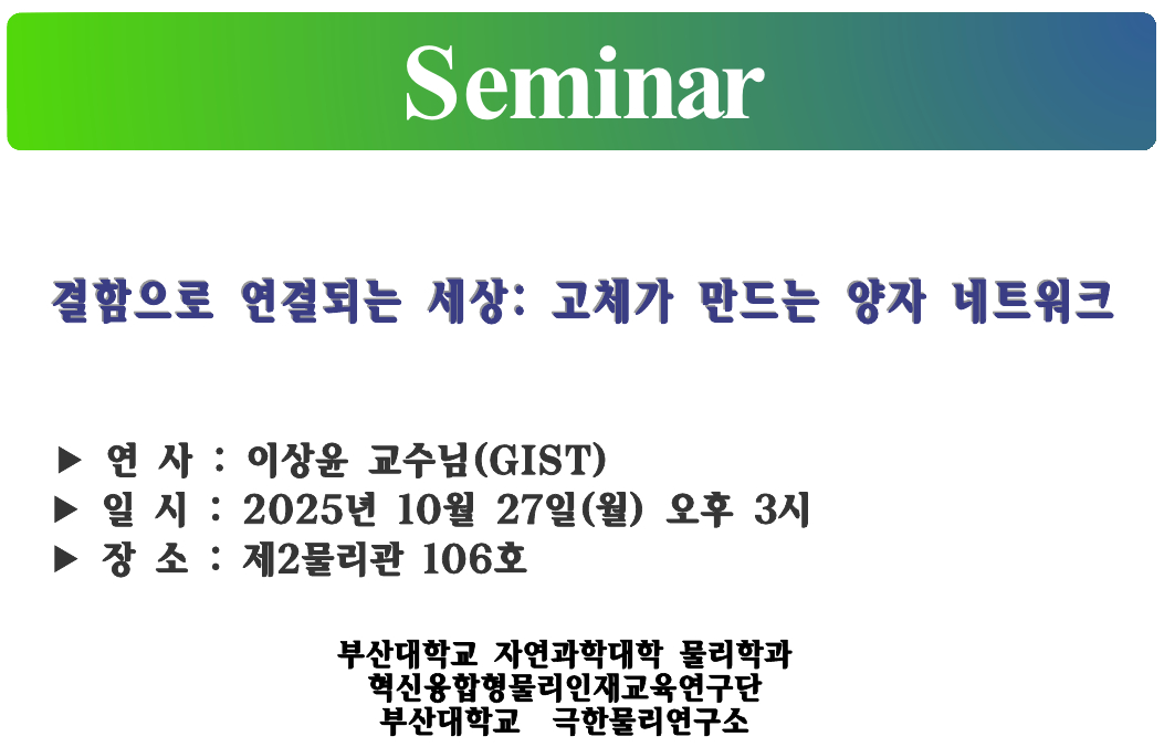 [특강 안내] 10월27일(월) 오후 3시 / 이상윤 교수님(GIST), 공경철 교수님(University of Kansas)
