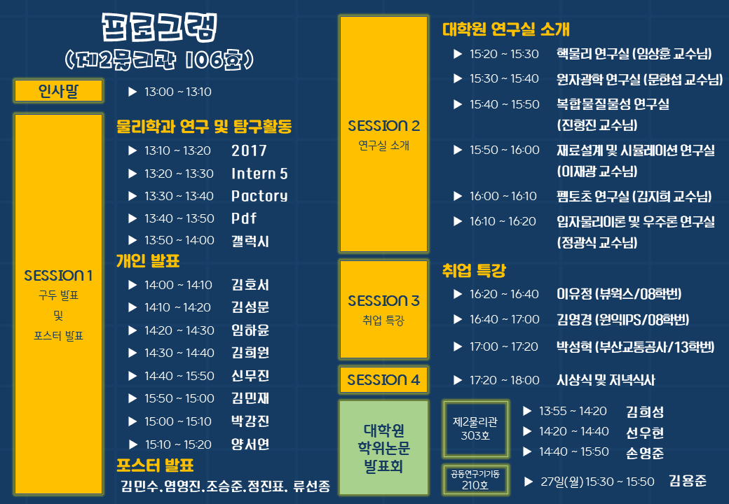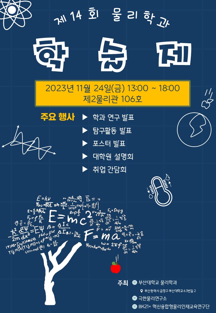 제14회 물리학과 학술제를 아래와 같이 진행하니 많은 참여를 부탁 드립니다.